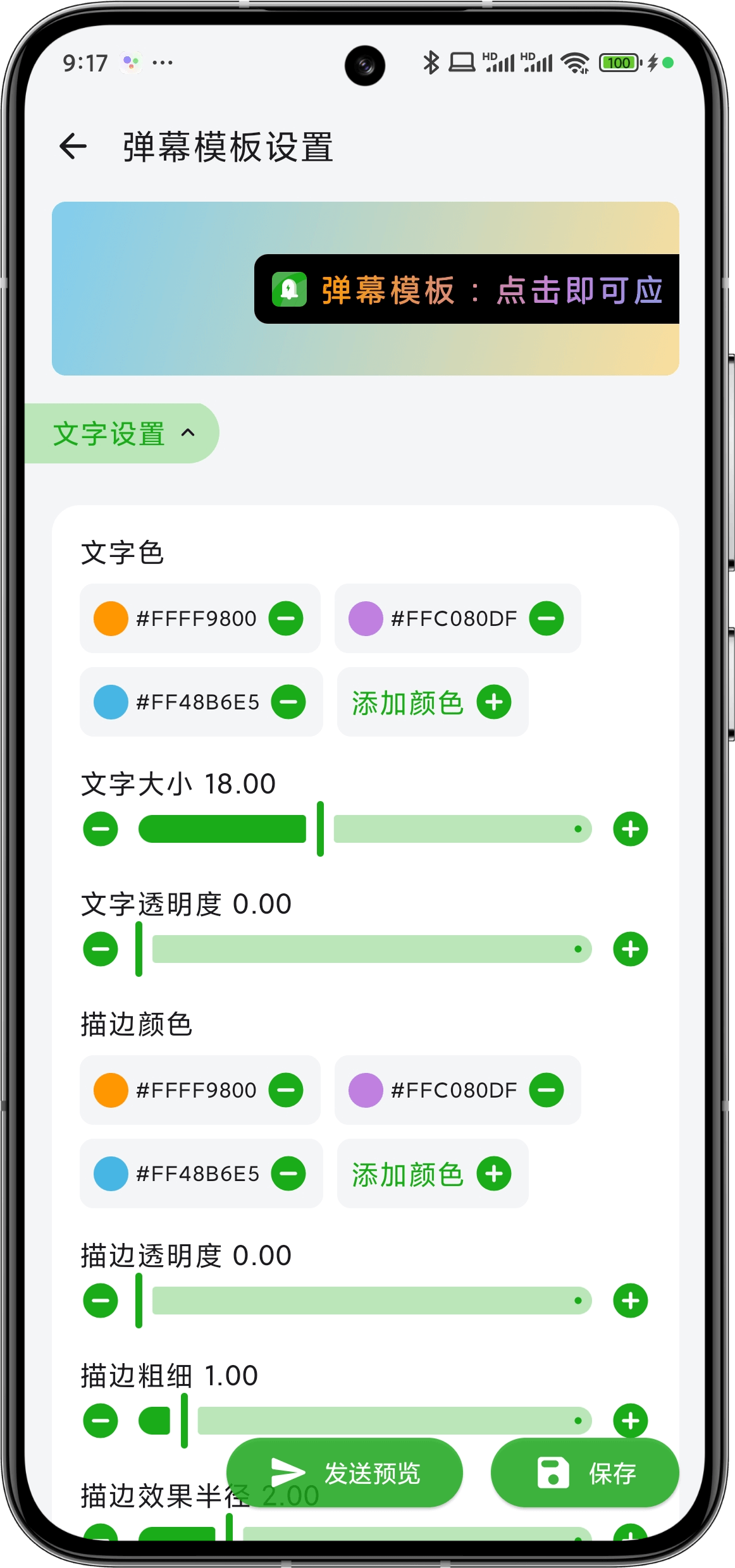 Bullet Screen Types: OneNotify offers three types: Scrolling Bullet Screen, Fixed Edge Bubble, and Marquee Edge Bubble. You can click the preview button at the bottom right of the template settings page to preview the bullet screen/bubble effect at any time.