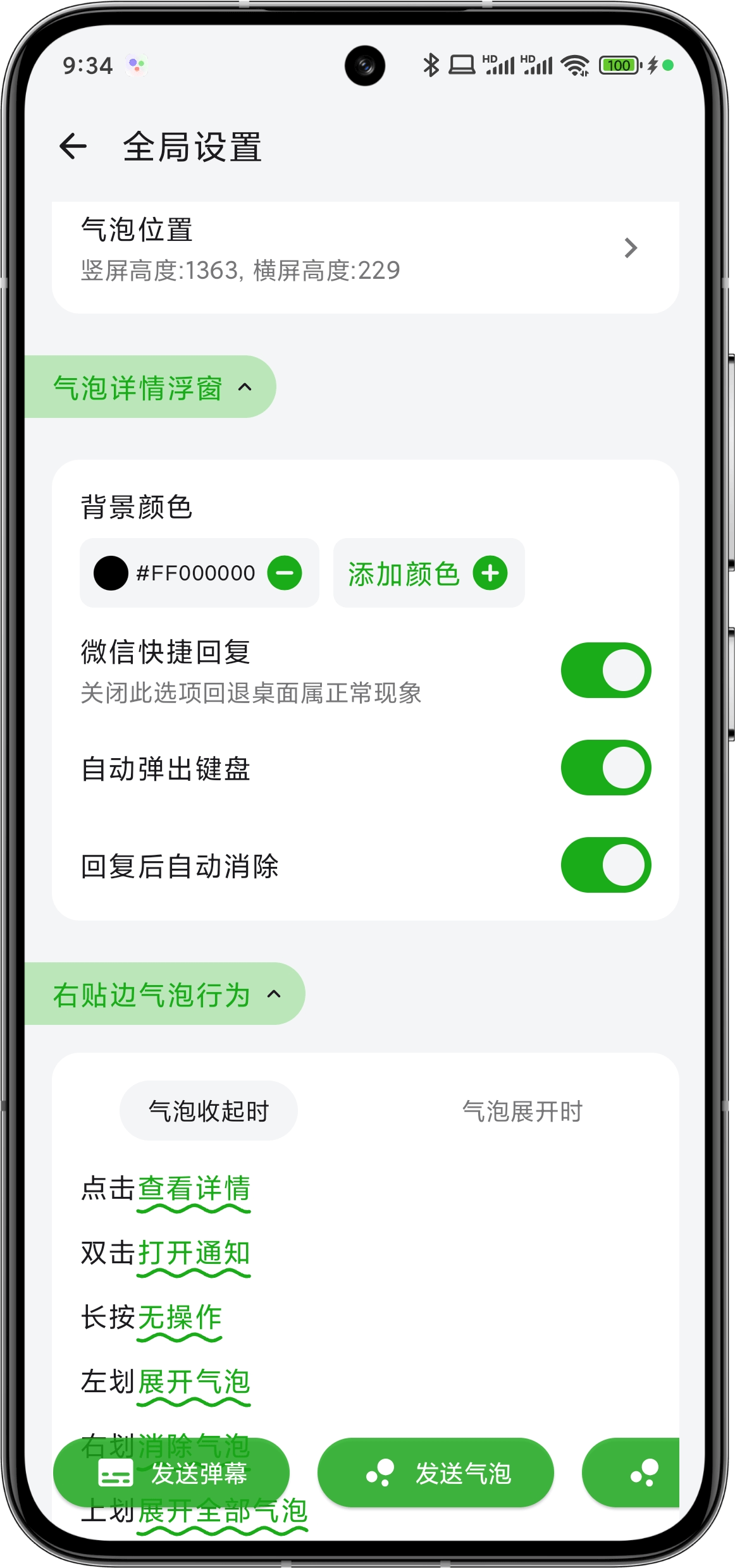 - Edge Bubble: Notification content appears as a bubble fixed to the screen edge, click to expand for details, and quick reply to messages from the details page.