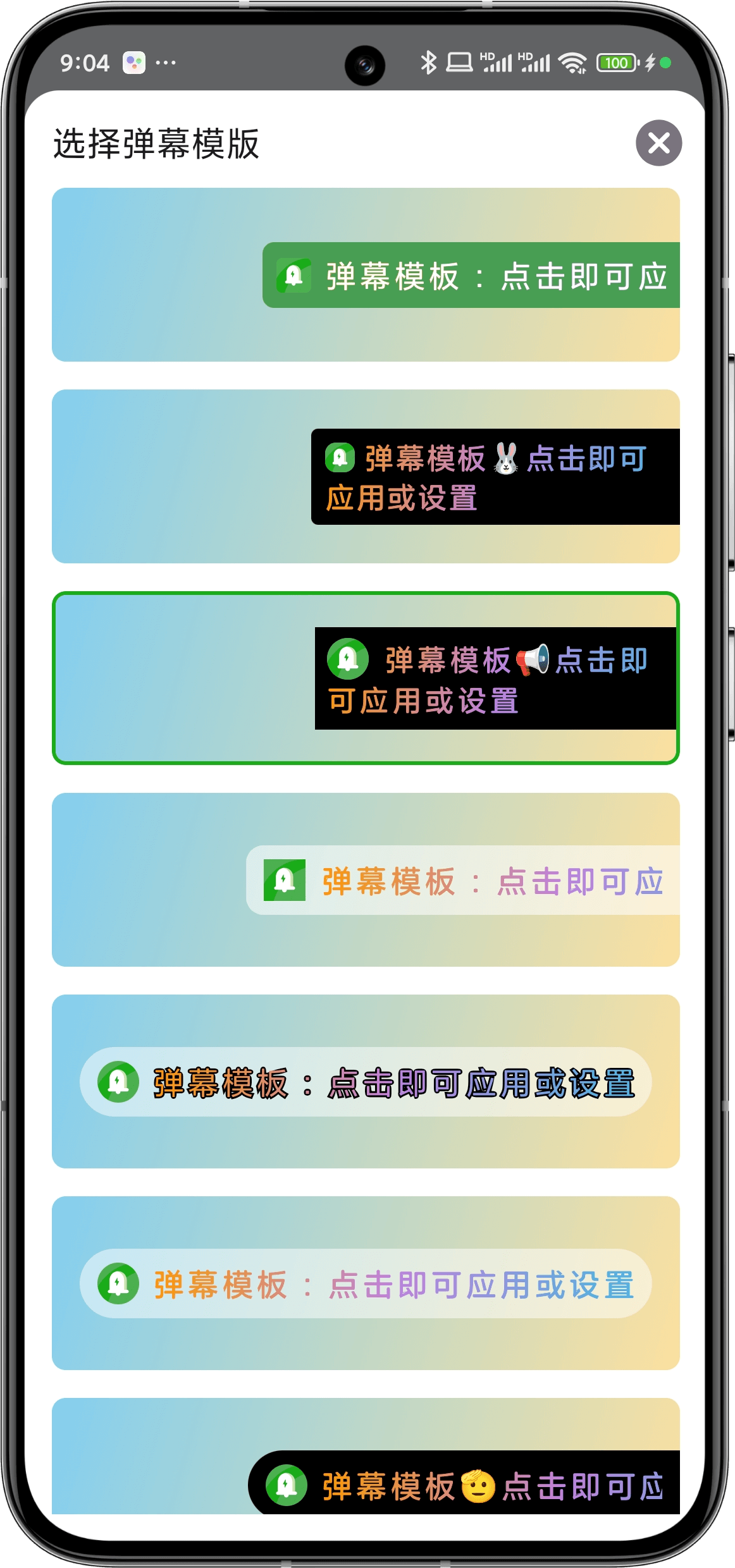 - Scrolling Bullet Screen: Notification content displays as scrolling text at the top or bottom of the screen.