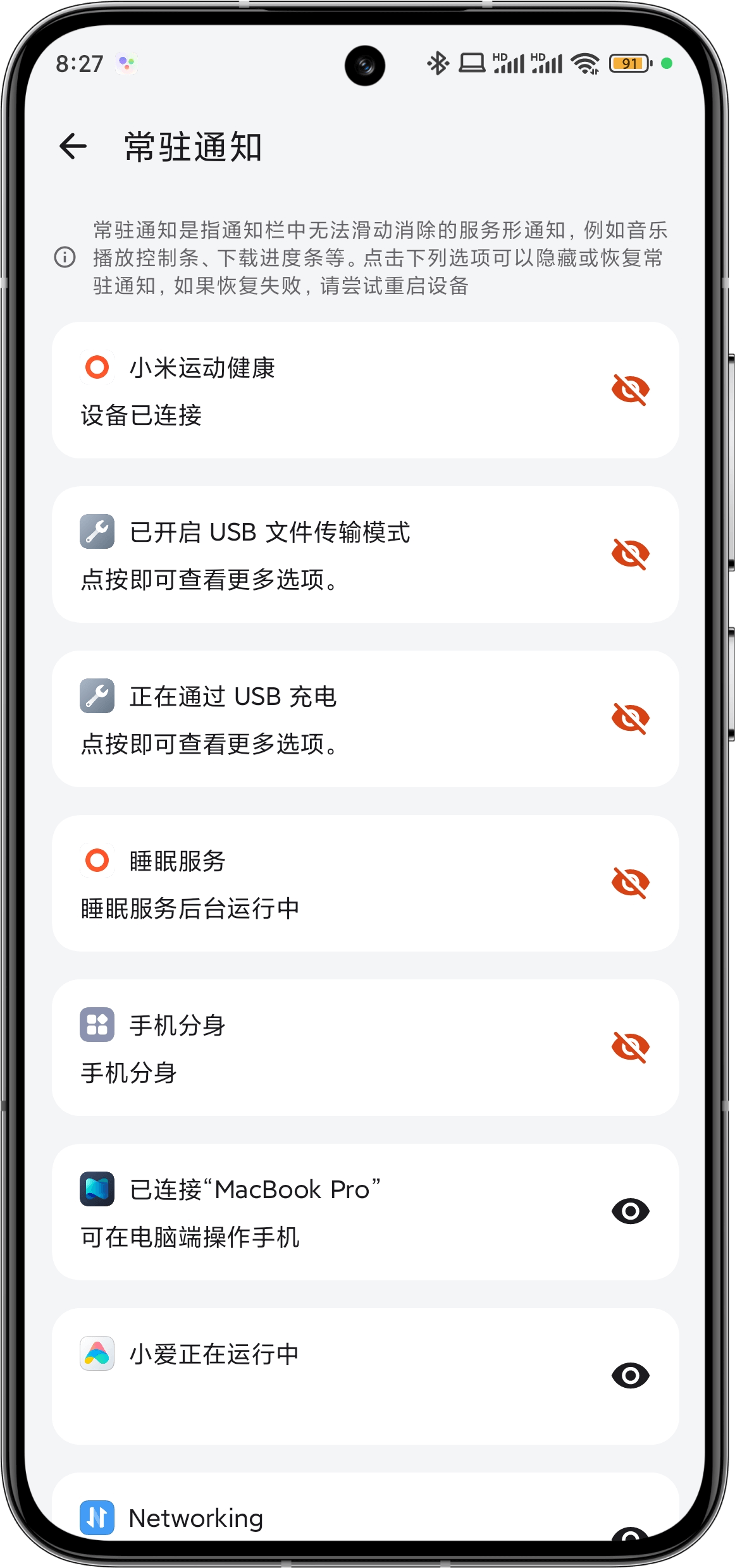 Persistent/fixed notifications refer to notifications in the notification bar that cannot be dismissed by swiping, such as music playback progress bars, background service notifications, etc.