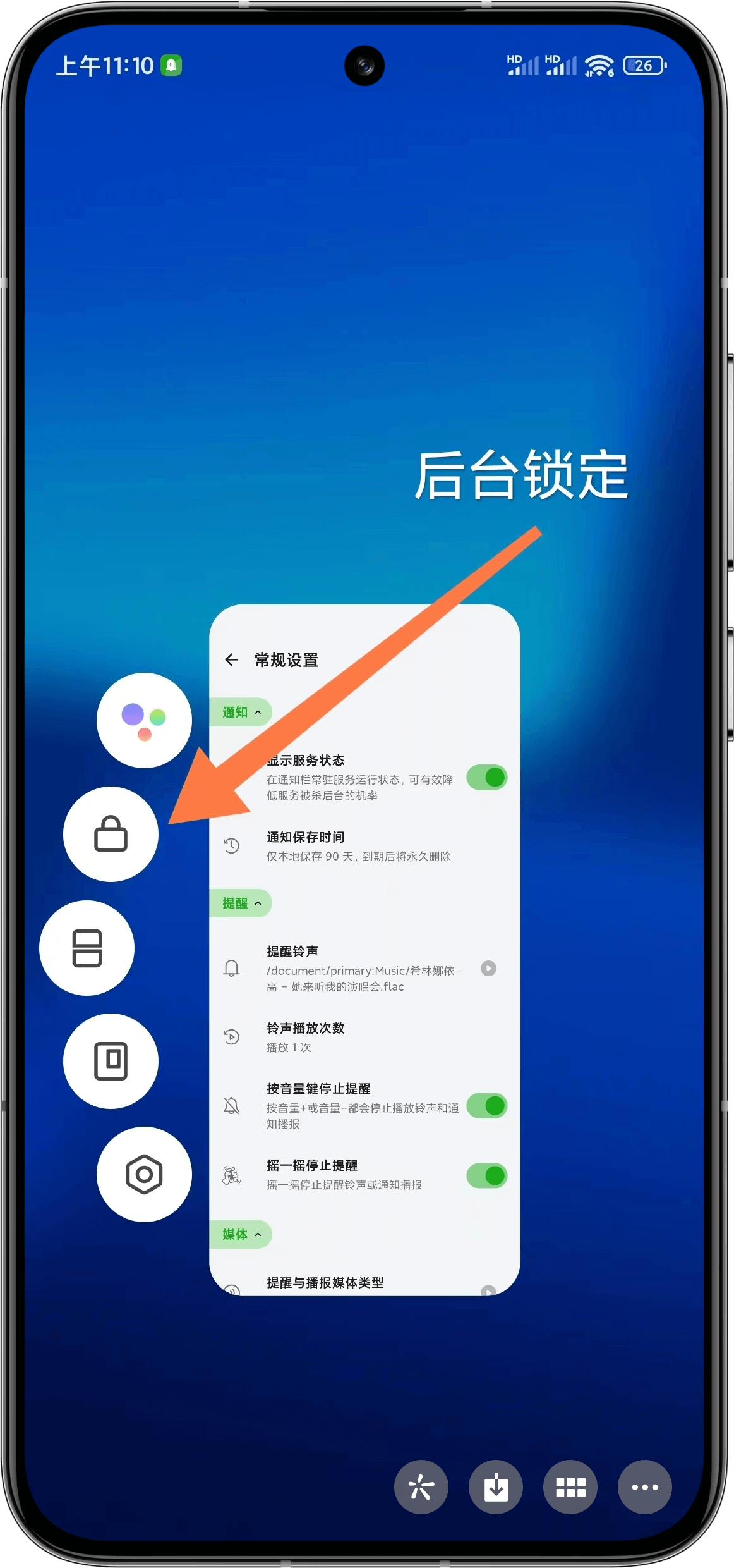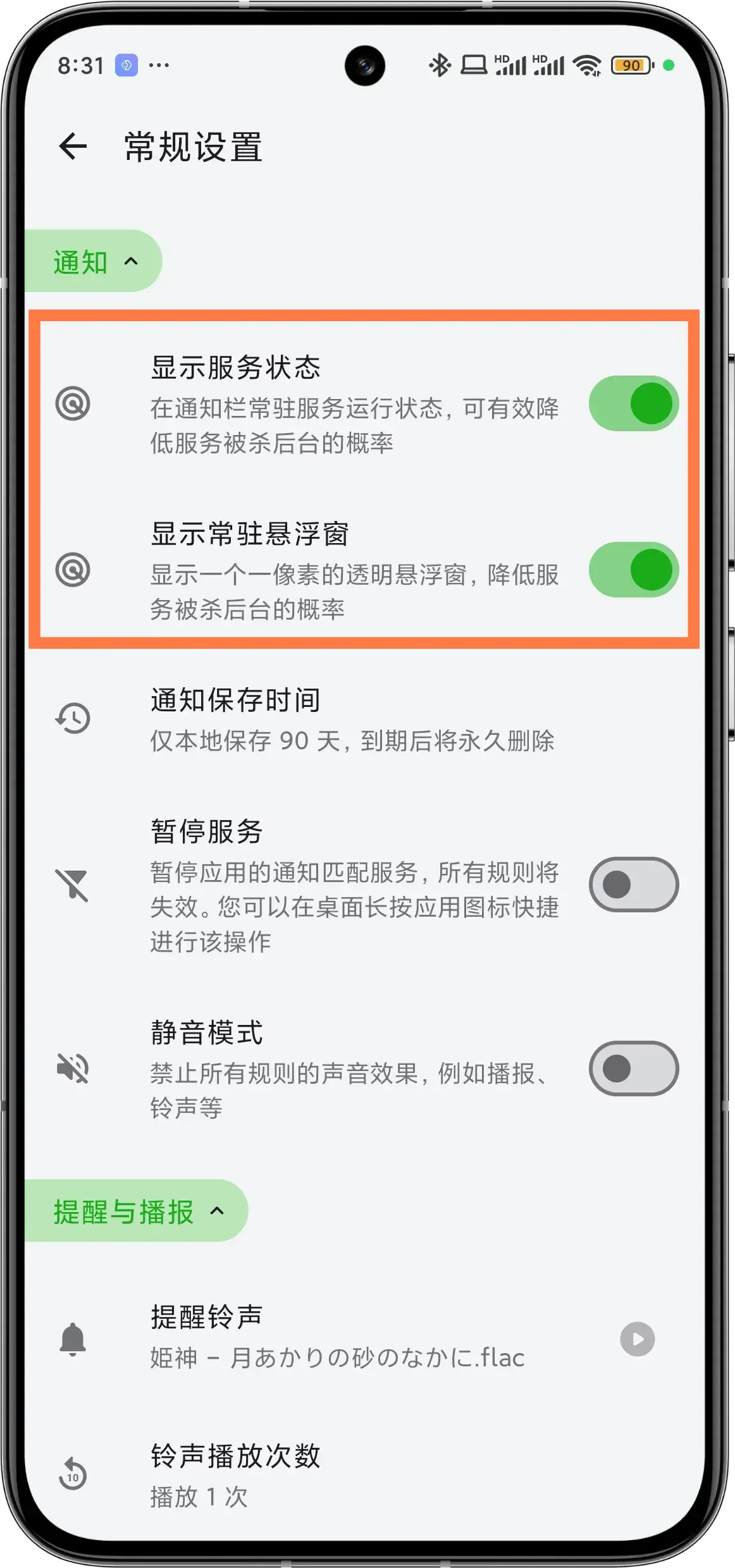 | Set power saving policy to unrestricted | Enable service status display and persistent floating window |