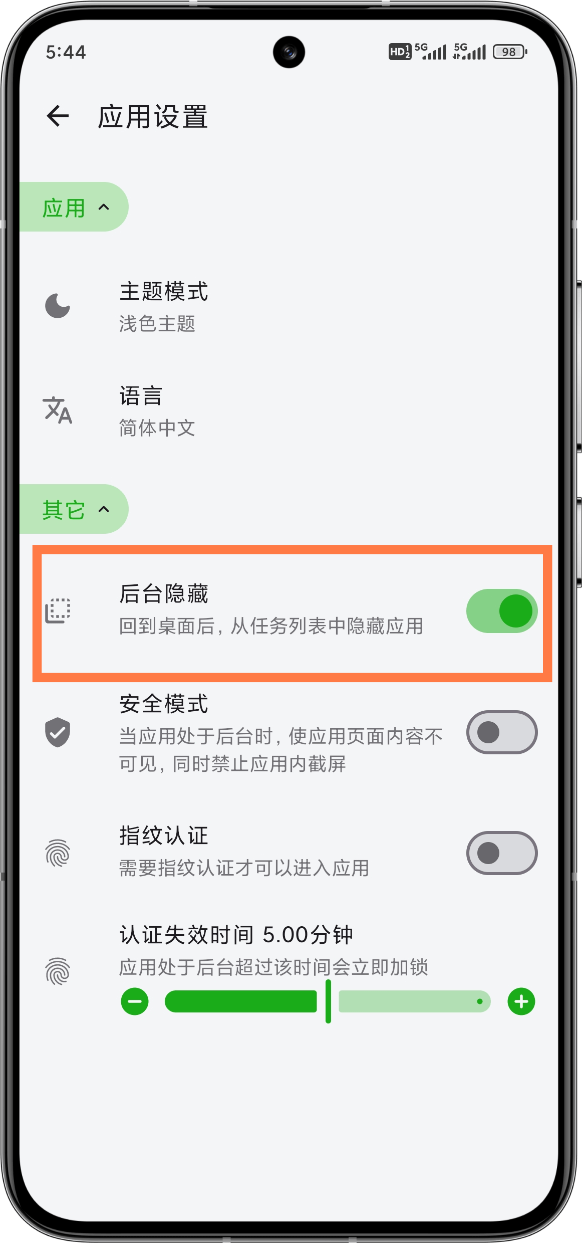| Enable background hiding | |