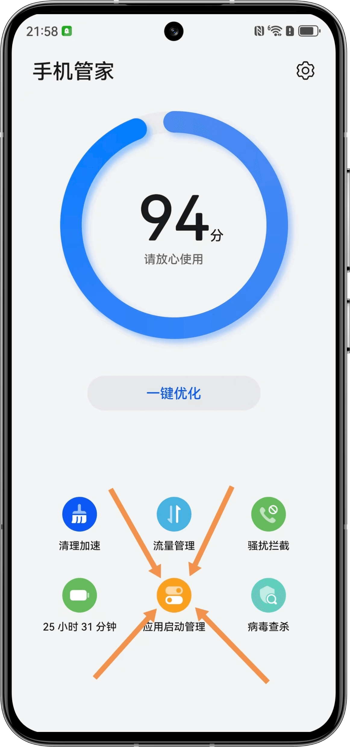 | Enable background running and ignore battery optimization | Open App Launch Management in Phone Manager |