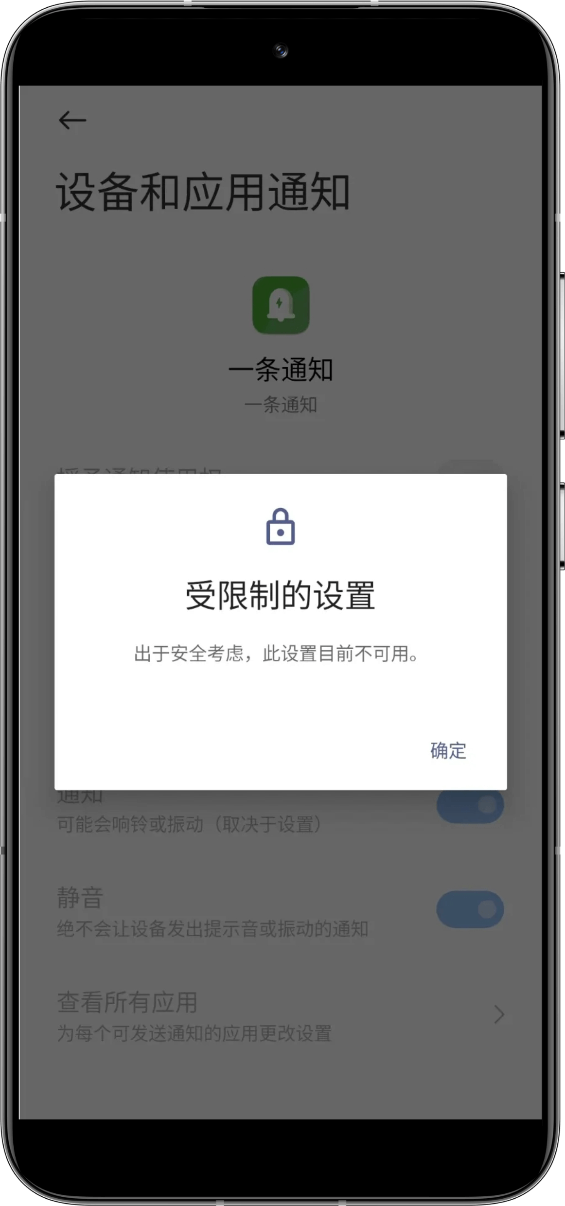 Some devices may encounter the following prompt when enabling notification usage rights.